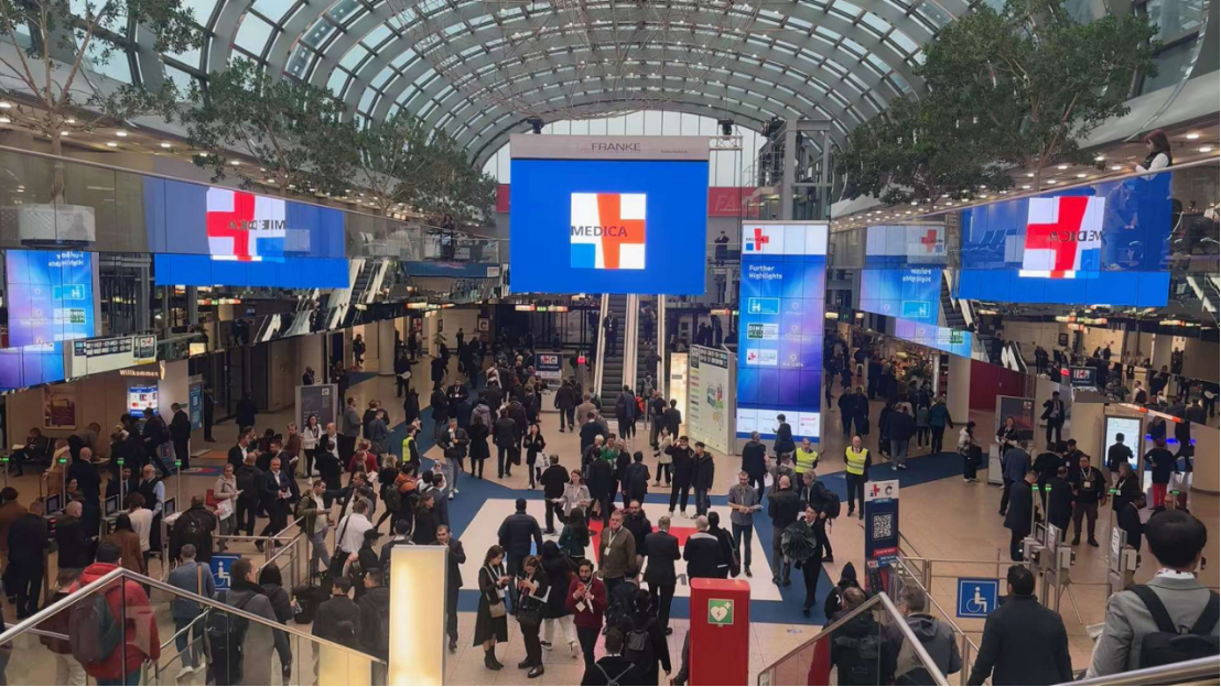 11月13日,2023年第55届德国杜塞尔多夫国际医院及医疗设备展览会 (简称MEDICA)开幕,来自全球超万家医疗公司汇聚于此。MEDICA作为世界知名的综合性医疗展,被公认为世界上最大的医院及医疗设备展览会,以其不可替代的规模和影响力位居世界医疗贸易展的首位。每年固定在德国的杜塞尔多夫召开,展示从门诊治疗到住院治疗整个领域内的各种产品和服务,参展产品包括医疗设备用品的所有常规大类以及医疗通讯信息科技、医用家具设备、医用场地建筑技术、医疗设备管理等。
