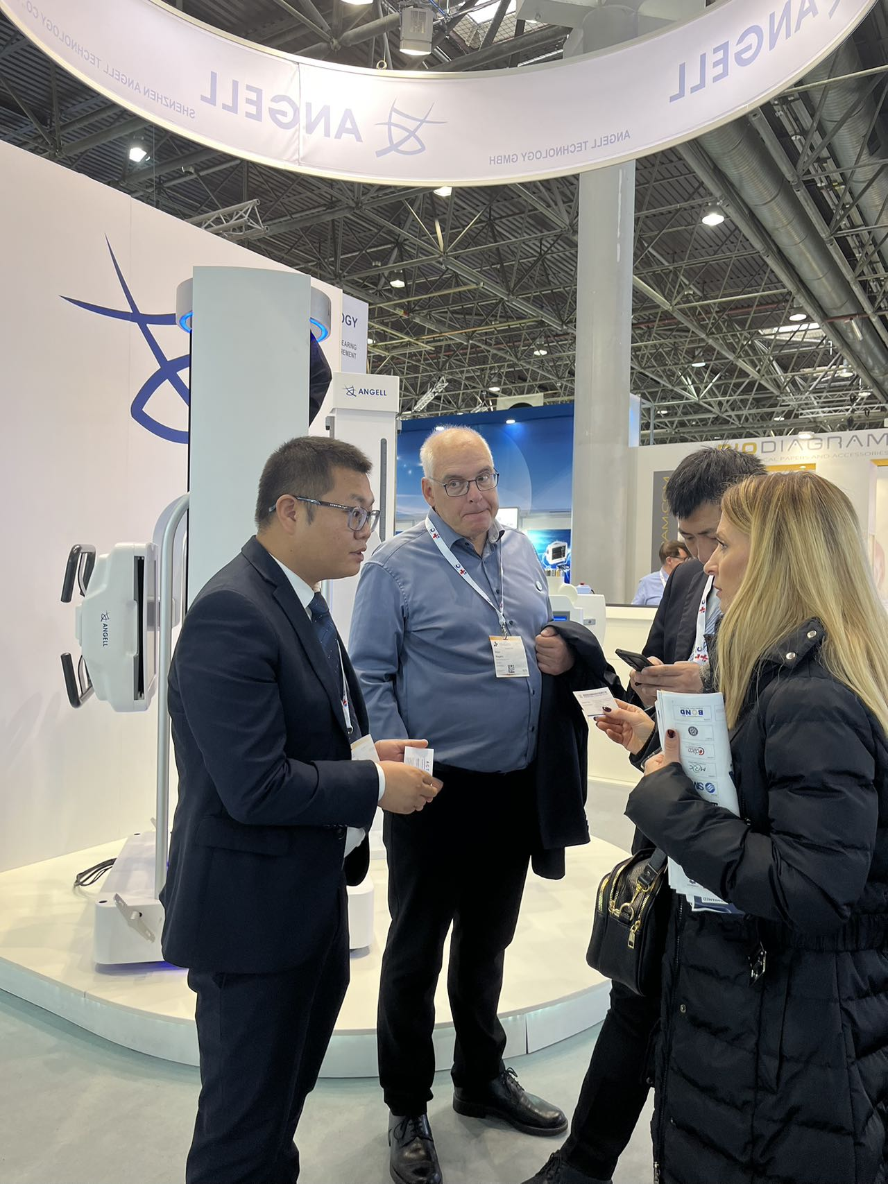在今年的MEDICA上,388vip太阳集团科技展示了其先进的WR-3D立体锥束断层X线摄影系统,这是行业首个2D+3D一站式骨关节立位全身成像X线摄影检查方案,受到了海外专业人士的高度评价和认可。它打破传统CT、MRI仰卧位扫描方式,创新实现负重位下全脊柱、全下肢三维扫描与重建,反映自然承重状态下的骨骼状态真实信息。不仅如此388vip太阳集团科技独有的AI测量解决方案,支持全身骨关节AI自动测量,提供全身 50+骨关节的角度、距离AI自动测量,一键生成结构化报告,赋能更加精准的骨科临床诊疗。展会期间,WR-3D设备吸引了大量观众驻足并详细了解和体验。